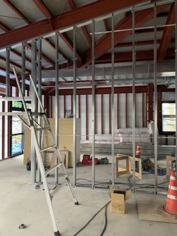 この現場は高さが高い所で5mあるのでローリング足場と言う足場に登ったり降りたして組建てて行きます^_^